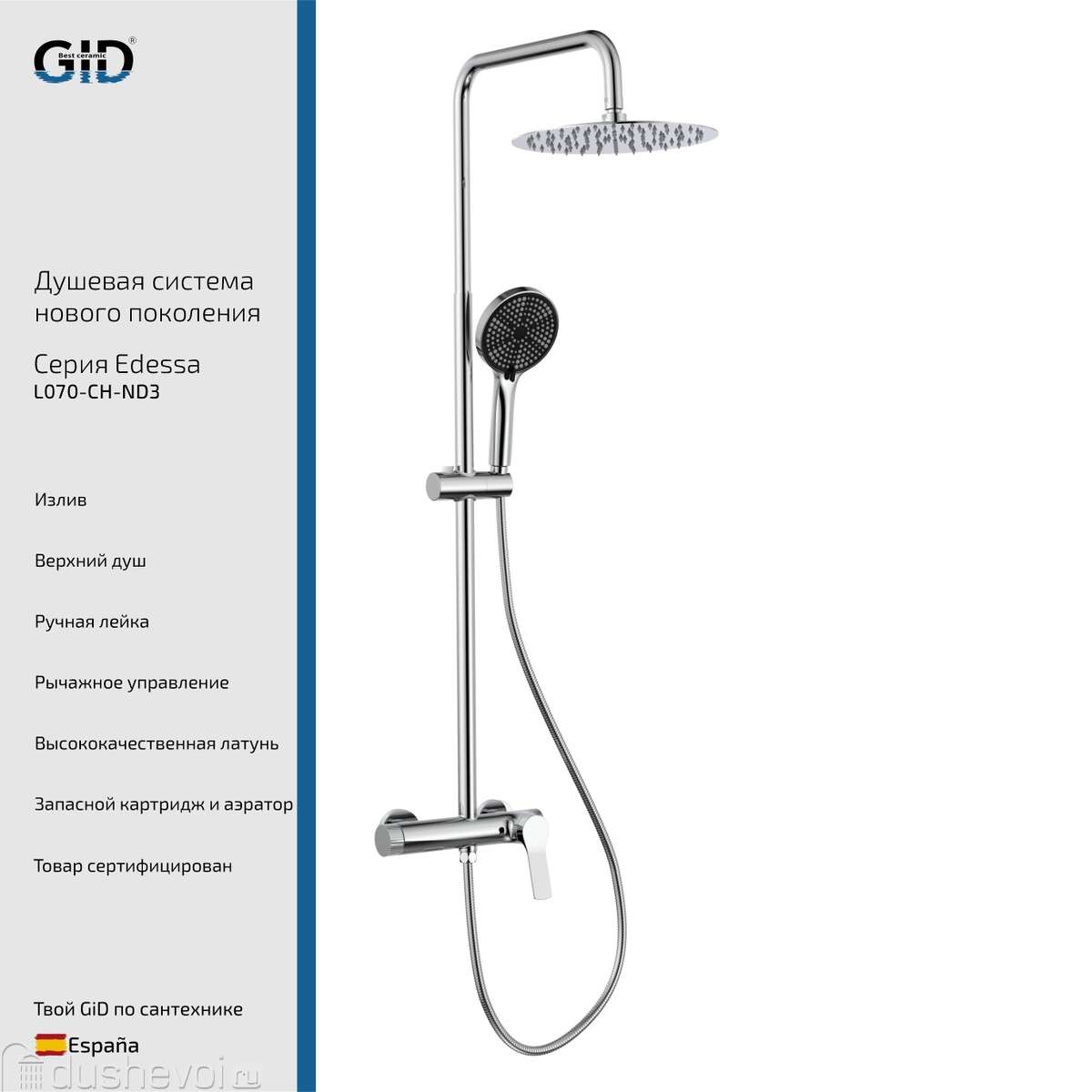 Душевая система GID Edessa L070-CH-ND3 сочетает современный дизайн и продуманную функциональность в классическом хромированном исполнении.